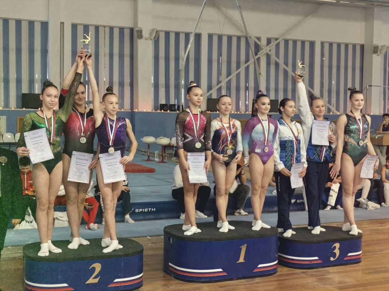 2 место в упражнениях на разновысоких брусьях.