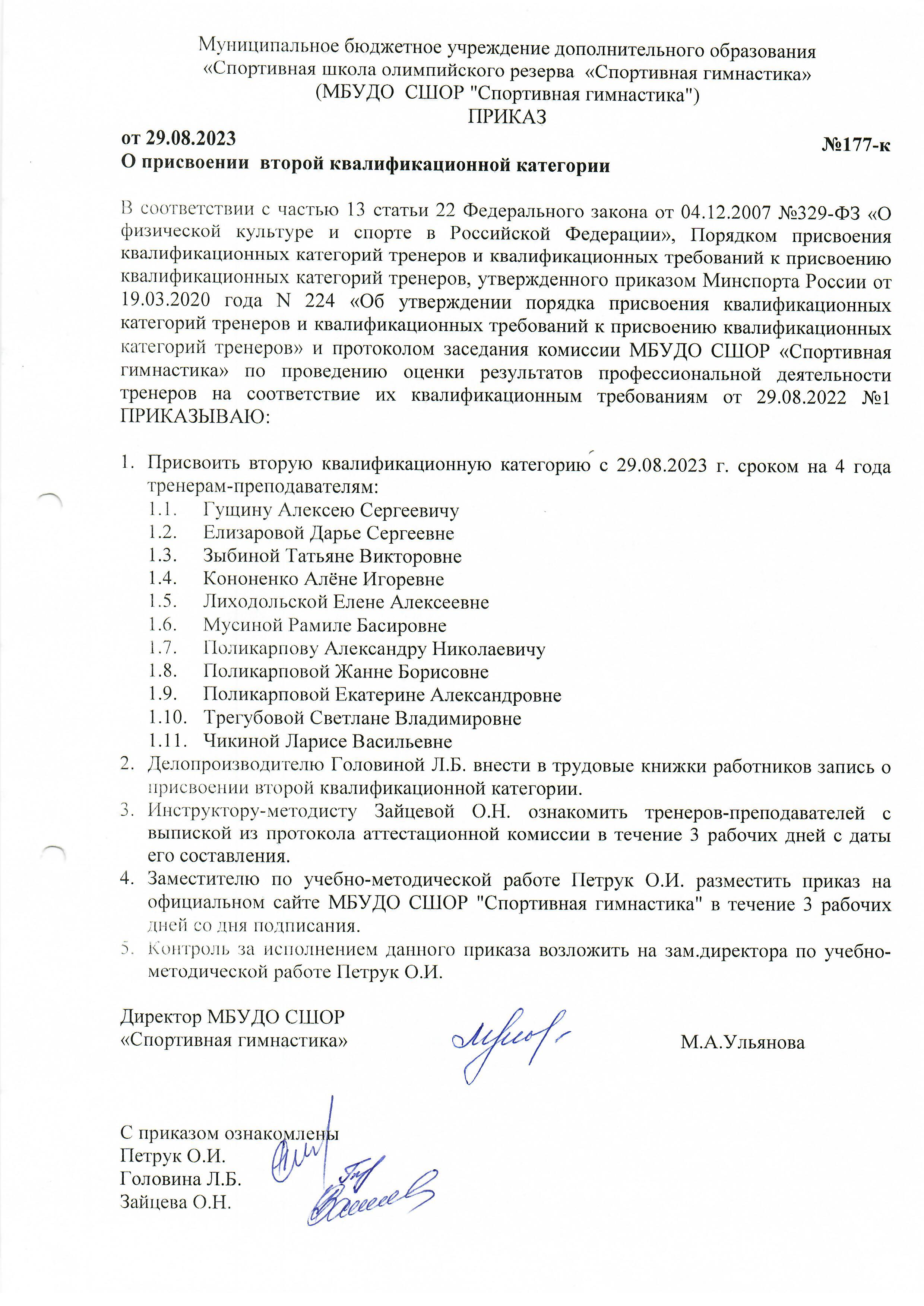 приказ присвоения 2кат 2023
